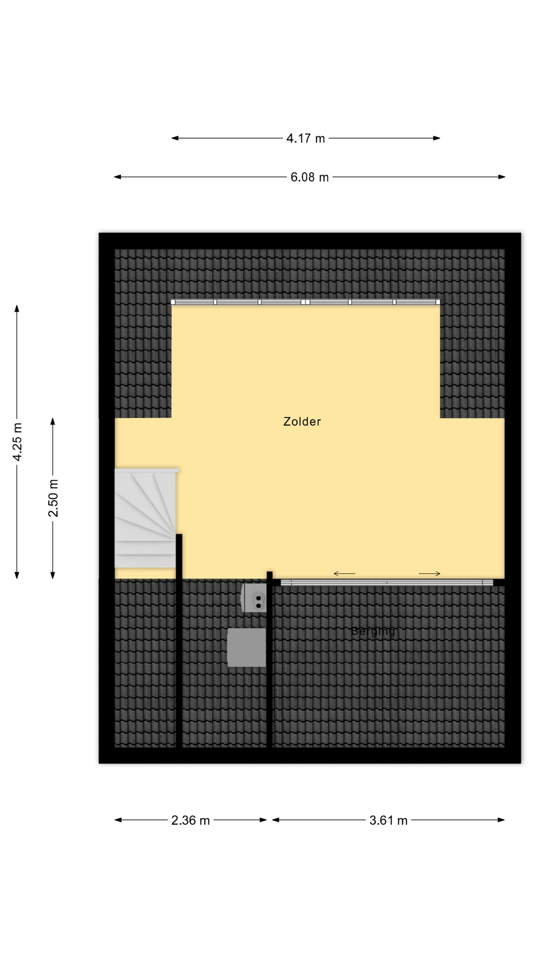 Tweede verdieping: Via vaste trap te bereiken royale bergzolder met grote dakkapel, witgoedaansluitingen, cv-installatie en omvormer van zonne-energie systeem. Deze volwaardige extra verdieping is uitermate geschikt om extra slaap-/logeer-/werkruimtes te creëren.