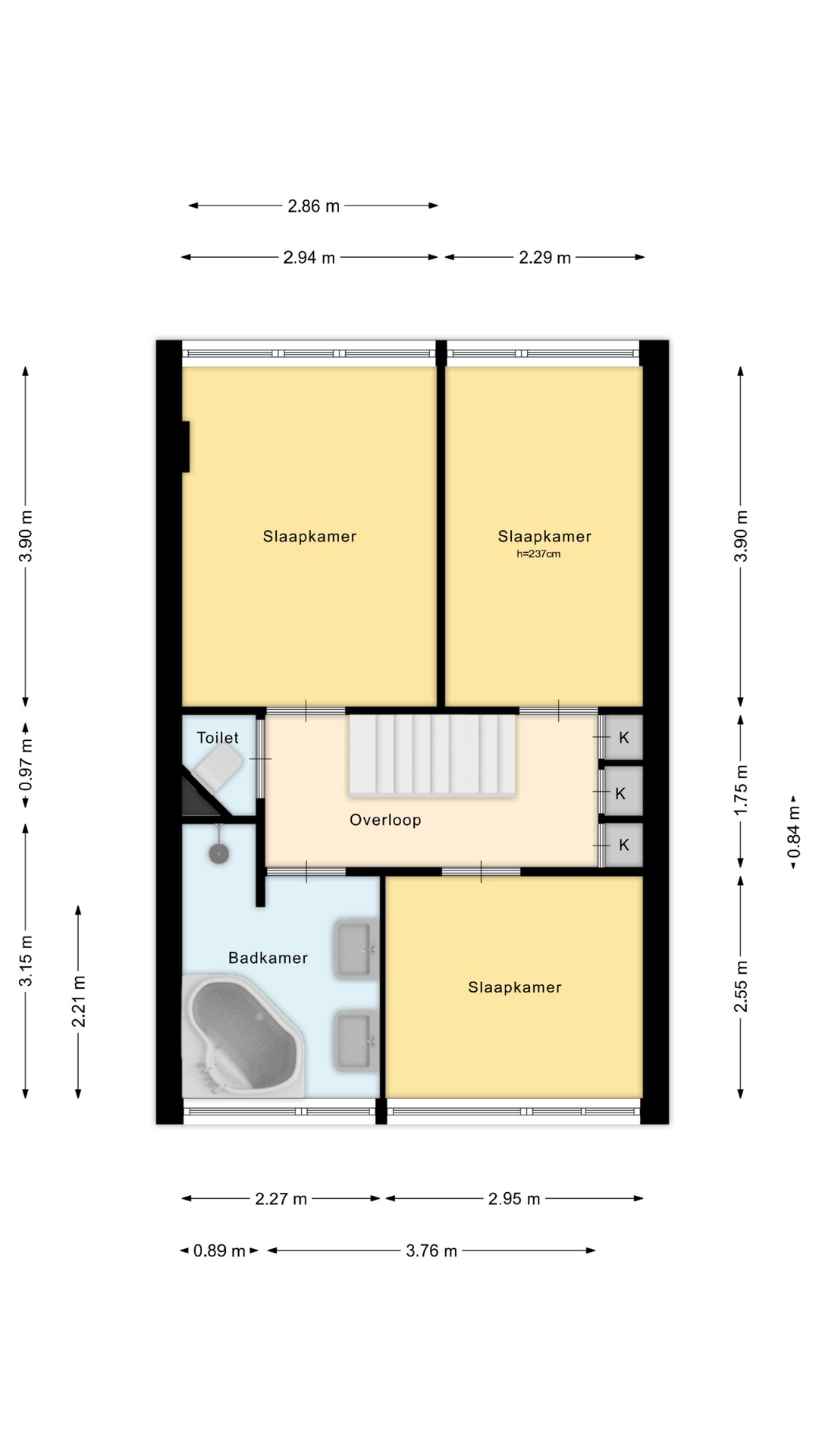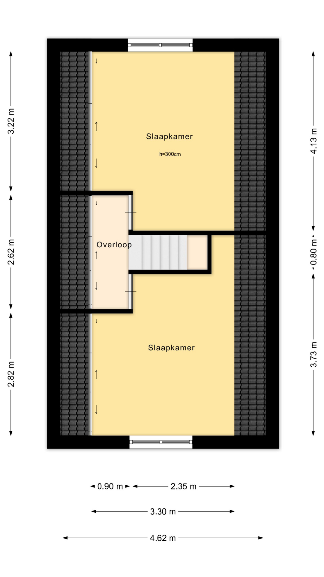 Tweede verdieping: Via een vaste trap bereikbare volwaardige extra verdieping met overloop en twee royale slaapkamers.