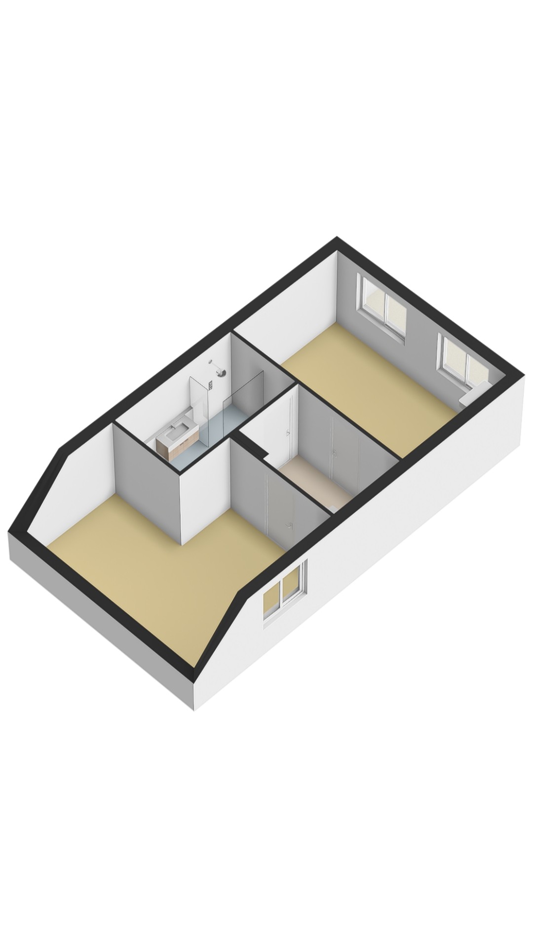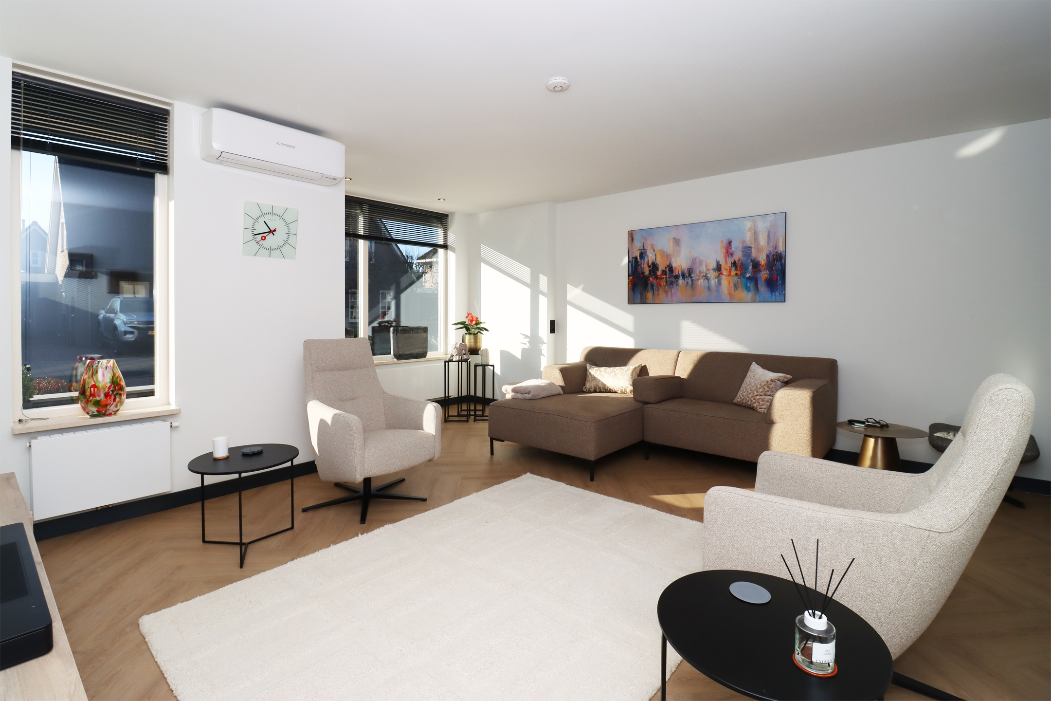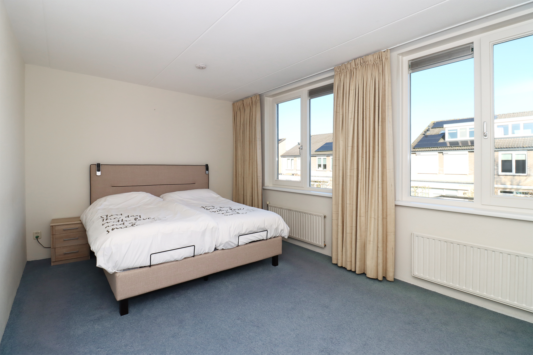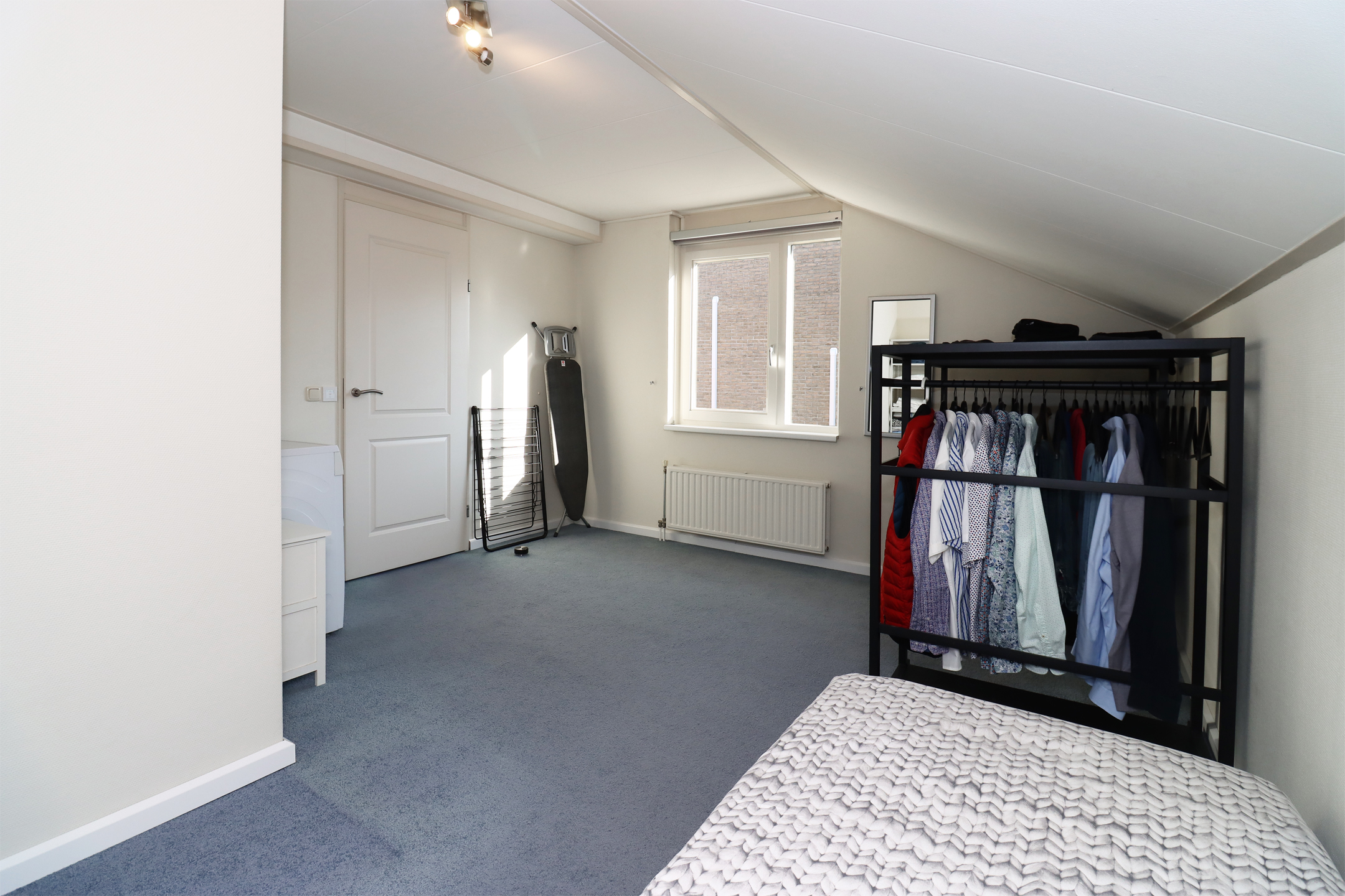 Tweede verdieping: Via een vaste trap bereikbare volwaardige verdieping met praktische inbouwkast, waarin de cv-installatie en de omvormer van het zonne-energiesysteem zijn geplaatst. Dankzij de raampartijen in de voorgevel en de grote dakkapel aan de achterzijde geniet deze verdieping van een prachtige lichtinval. De ruimte is in 2024 gemoderniseerd, afgewerkt met een lichte pvc-vloer en momenteel ingericht als kantoor, maar leent zich uitstekend als extra slaap- of logeerkamer.